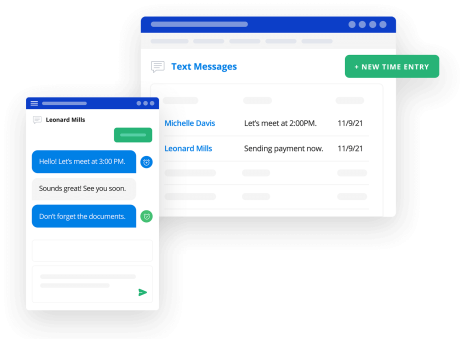 Eliminate the need for costly third-party services and enjoy the benefits of a secure and cost-effective communication platform with PracticePanther’s built-in business texting feature. Enhance client engagement and satisfaction by allowing text messaging between attorneys and clients. Send timely updates, securely receive photos and documents, and easily communicate with clients to build a stronger relationship with PracticePanther’s business texting.